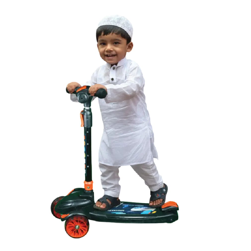 এর ৩ চাকার ডিজাইন শিশুকে বাড়তি ভারসাম্য দেয়, ফলে নতুন স্কুটার চালানো শিশুরাও খুব সহজে ও নিরাপদে ব্যবহার করতে পারে।